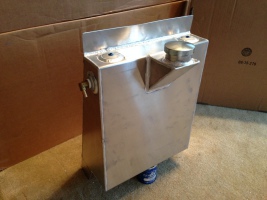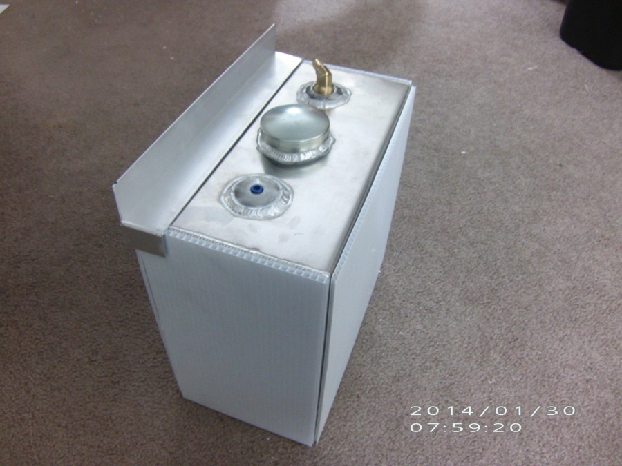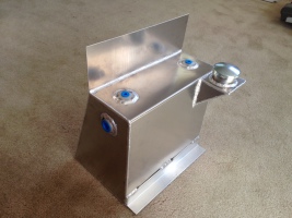 A custom flush fit tank for RV airplanes. This tank will not use ANY of your baggage compartment space and unless you look close you will not even notice the tank in the airplane. Ultra simple installation. Holds 4.25 gallons of smoke oil. Leaves all other tanks in the dust. Do not put an ugly tank in your airplane, this one is as beautiful as it is practical.
