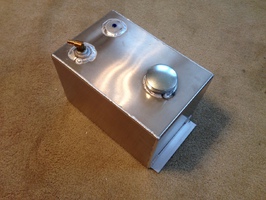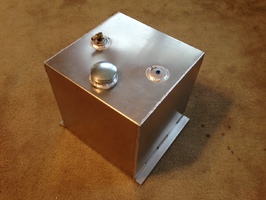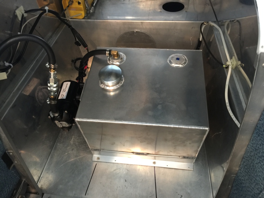 A custom flush fit tank for RV airplanes. This tank will not use ANY of your baggage compartment space and unless you look close you will not even notice the tank in the airplane. Ultra simple installation. Holds 4.25 gallons of smoke oil. Leaves all other tanks in the dust. Do not put an ugly tank in your airplane, this one is as beautiful as it is practical.